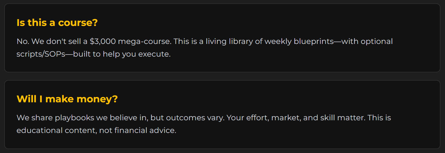 Educational content only. Outcomes vary based on effort, market, and skill. This is not financial or legal advice.